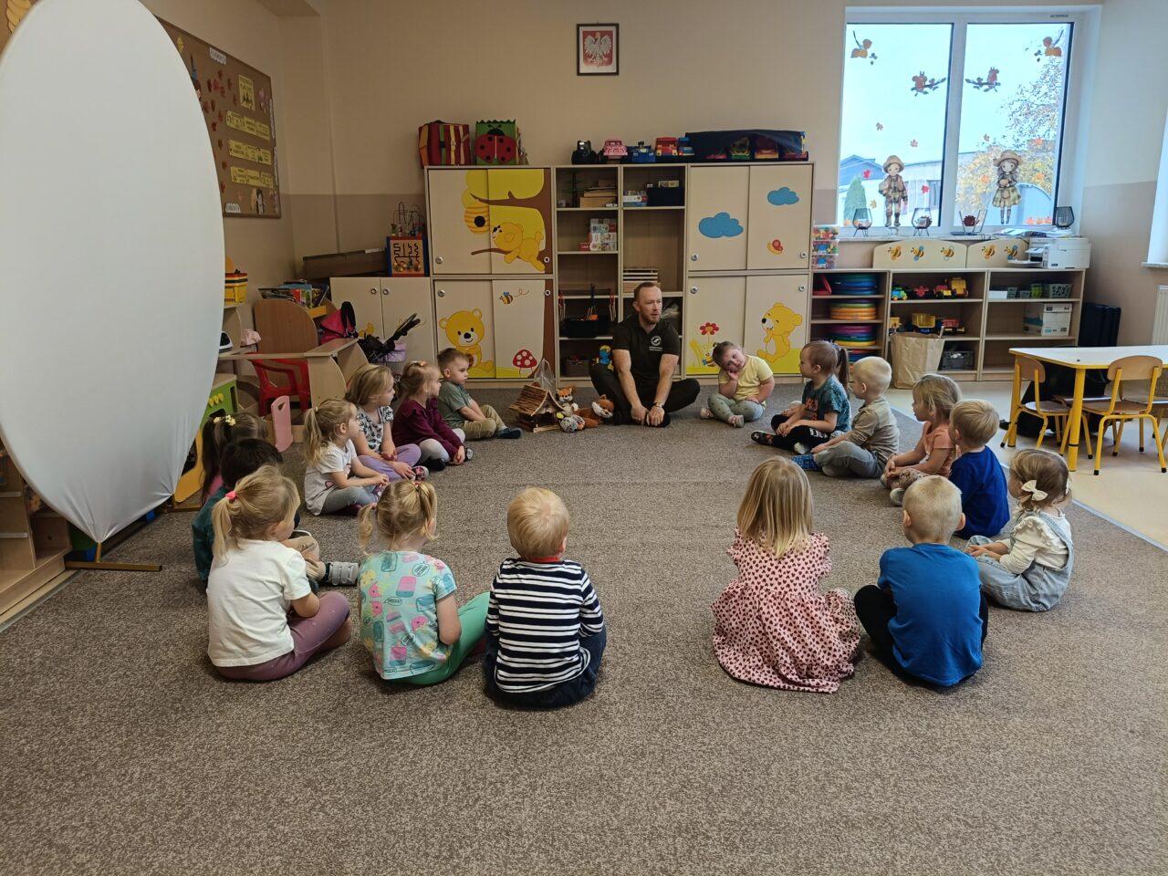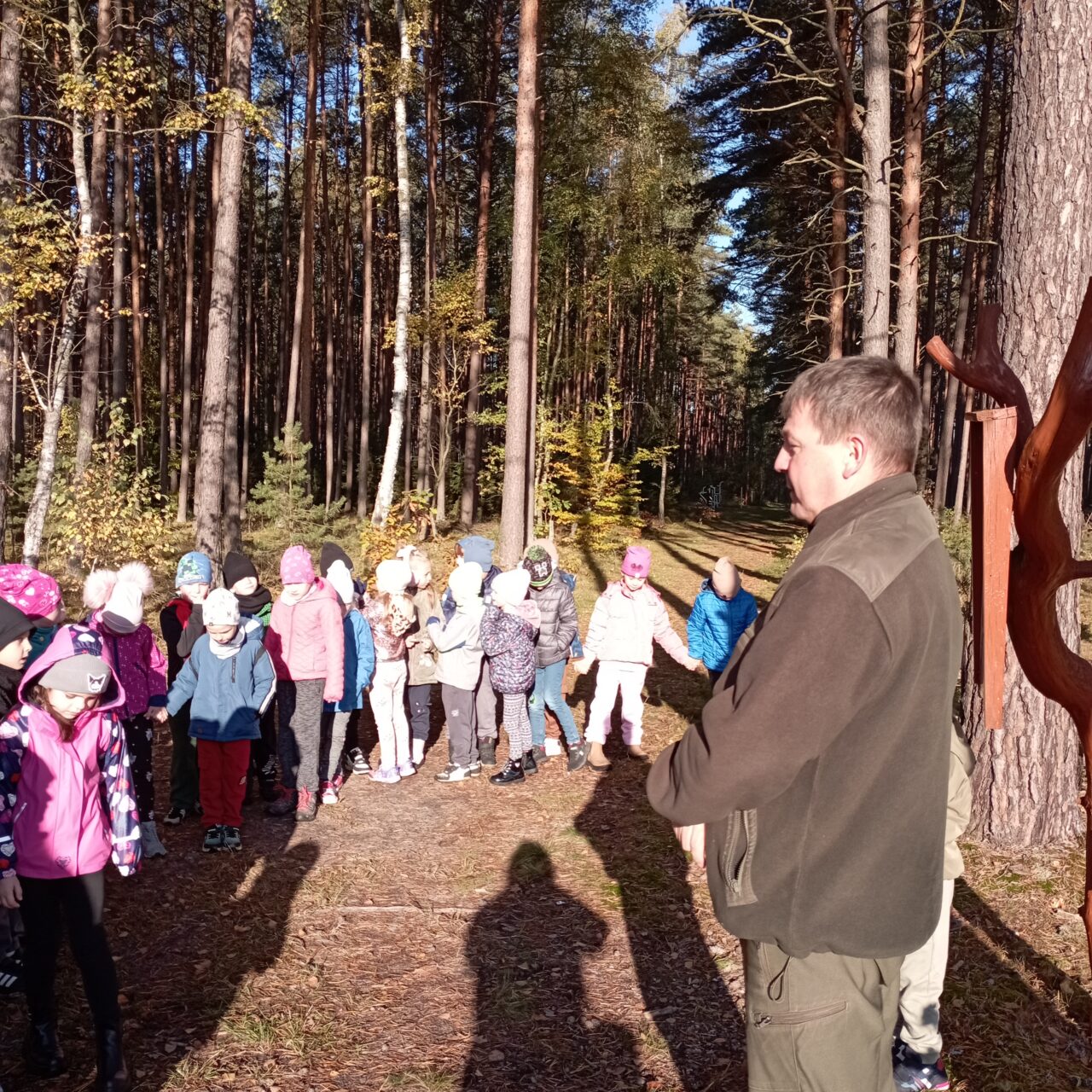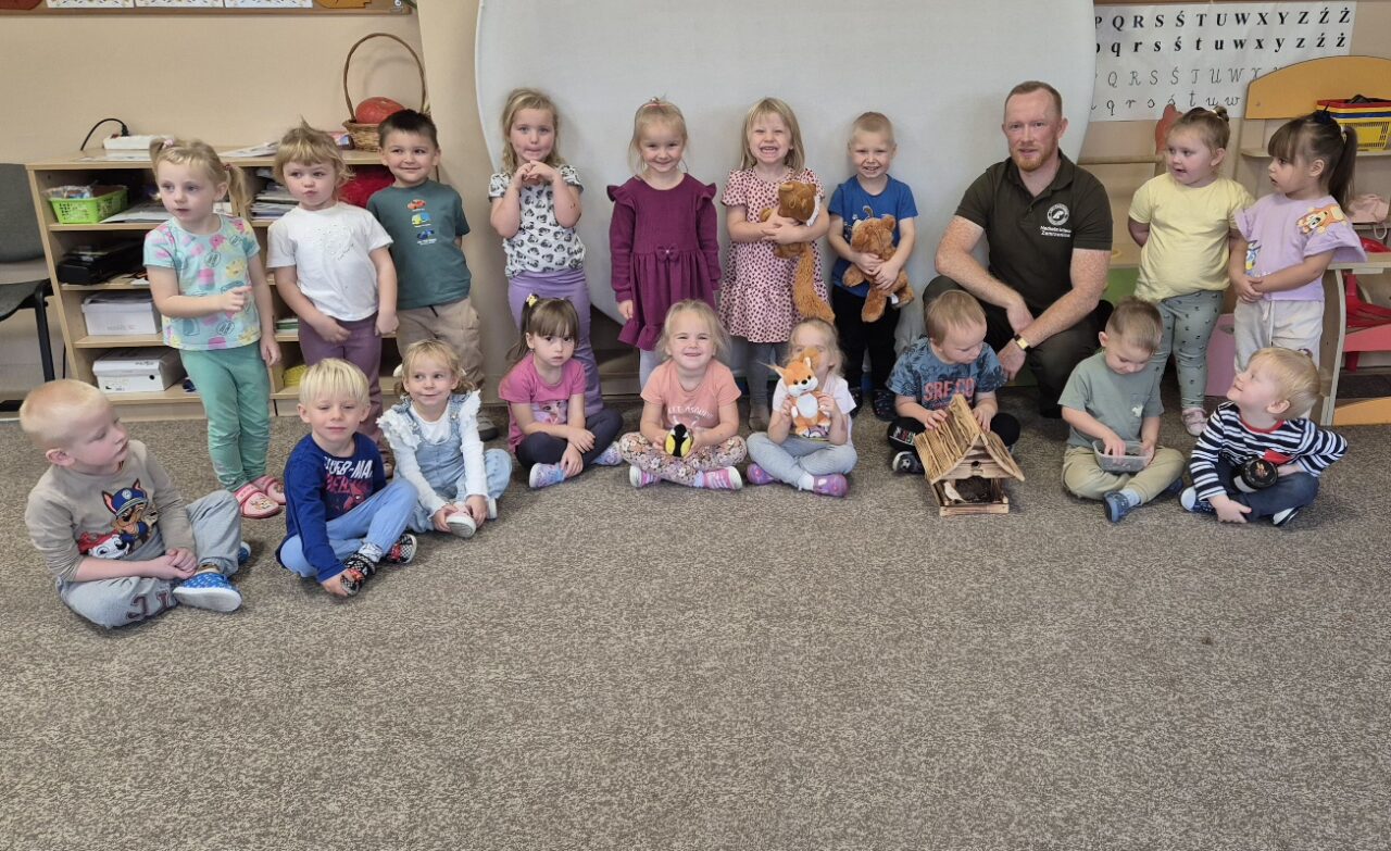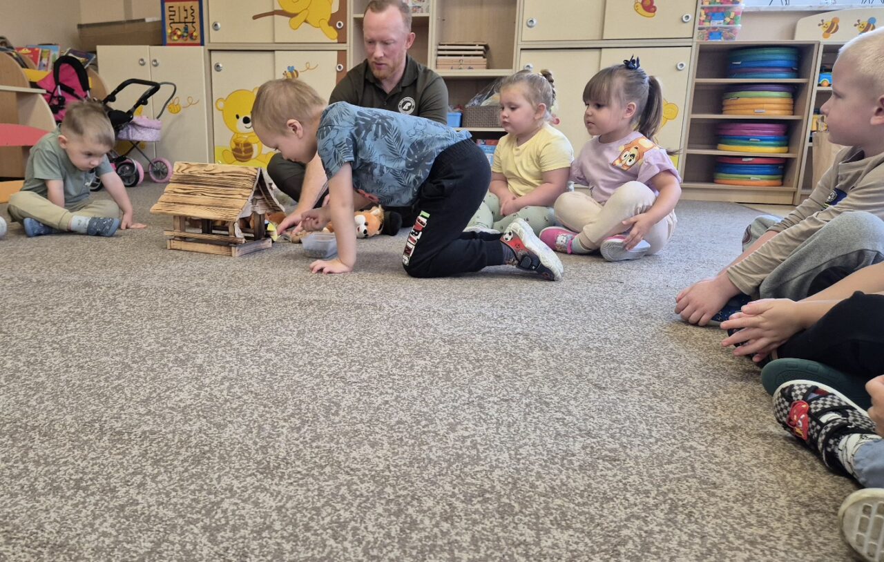 Dodatkowo zaprezentował dzieciom karmnik dla ptaków oraz pokazał, jak można samodzielnie zbudować bezpieczne schronienie dla jeża. Dzięki praktycznym wskazówkom dzieci dowiedziały się, w jaki sposób mogą pomagać zwierzętom przetrwać zimę.