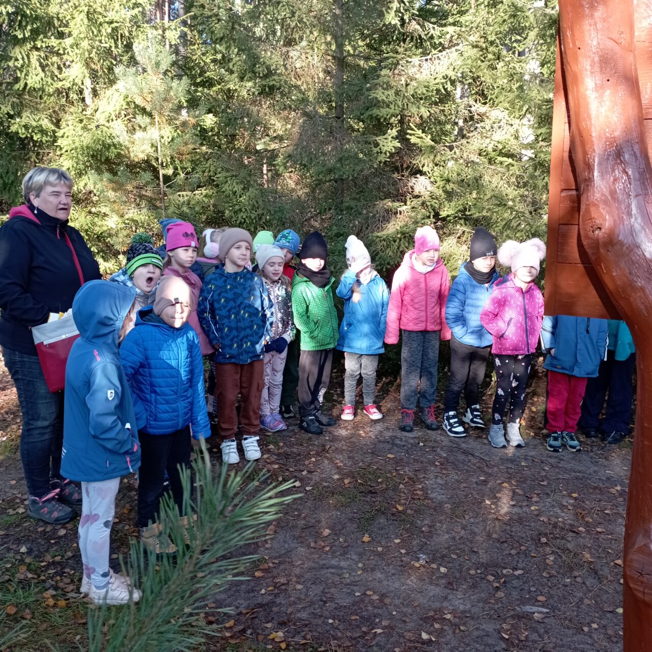 Część przedszkolaków miała również okazję wybrać się na wycieczkę do Nadleśnictwa Zamrzenica, gdzie mogły zobaczyć, jak wygląda praca leśników w terenie, poznać różne gatunki drzew i zwierząt oraz dowiedzieć się, jak leśnicy dbają o przyrodę przez cały rok.