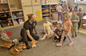 Nasze przedszkole odwiedził wyjątkowy gość. Pan Leśniczy, który w niezwykle ciekawy sposób opowiedział dzieciom o życiu zwierząt leśnych oraz o tym,