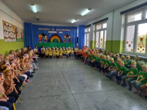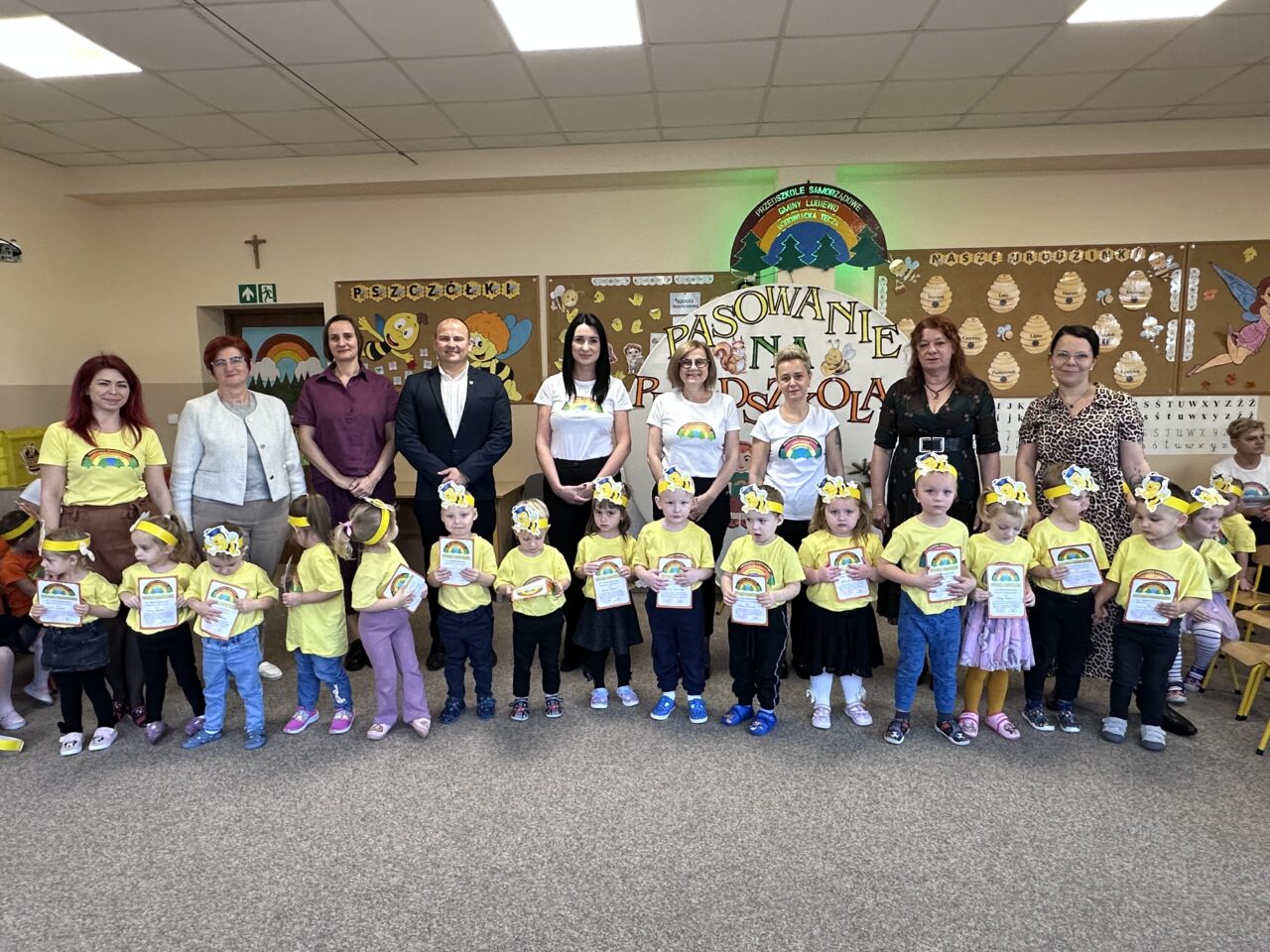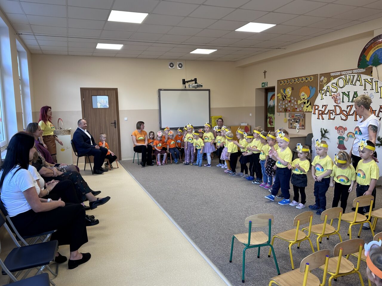 Podczas występów dzieci zaprezentowały swoje umiejętności, recytowały wiersze i śpiewały piosenki, pokazując, że są gotowe do przedszkolnej przygody. Następnie nastąpiła najważniejsza chwila – uroczyste pasowanie, po którym każde dziecko otrzymało pamiątkowy dyplom i gratulacje.