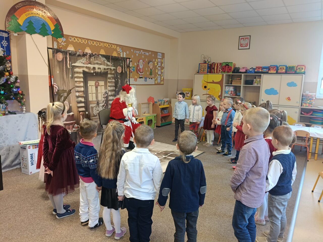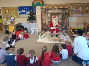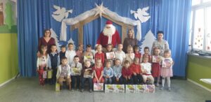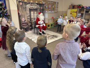 Tego dnia odwiedził nas także wyjątkowy gość. Gwiazdor, który sprawił dzieciom ogromną radość. Przedszkolaki otrzymały od niego prezenty, a spotkanie było pełne uśmiechów i pozytywnych emocji.