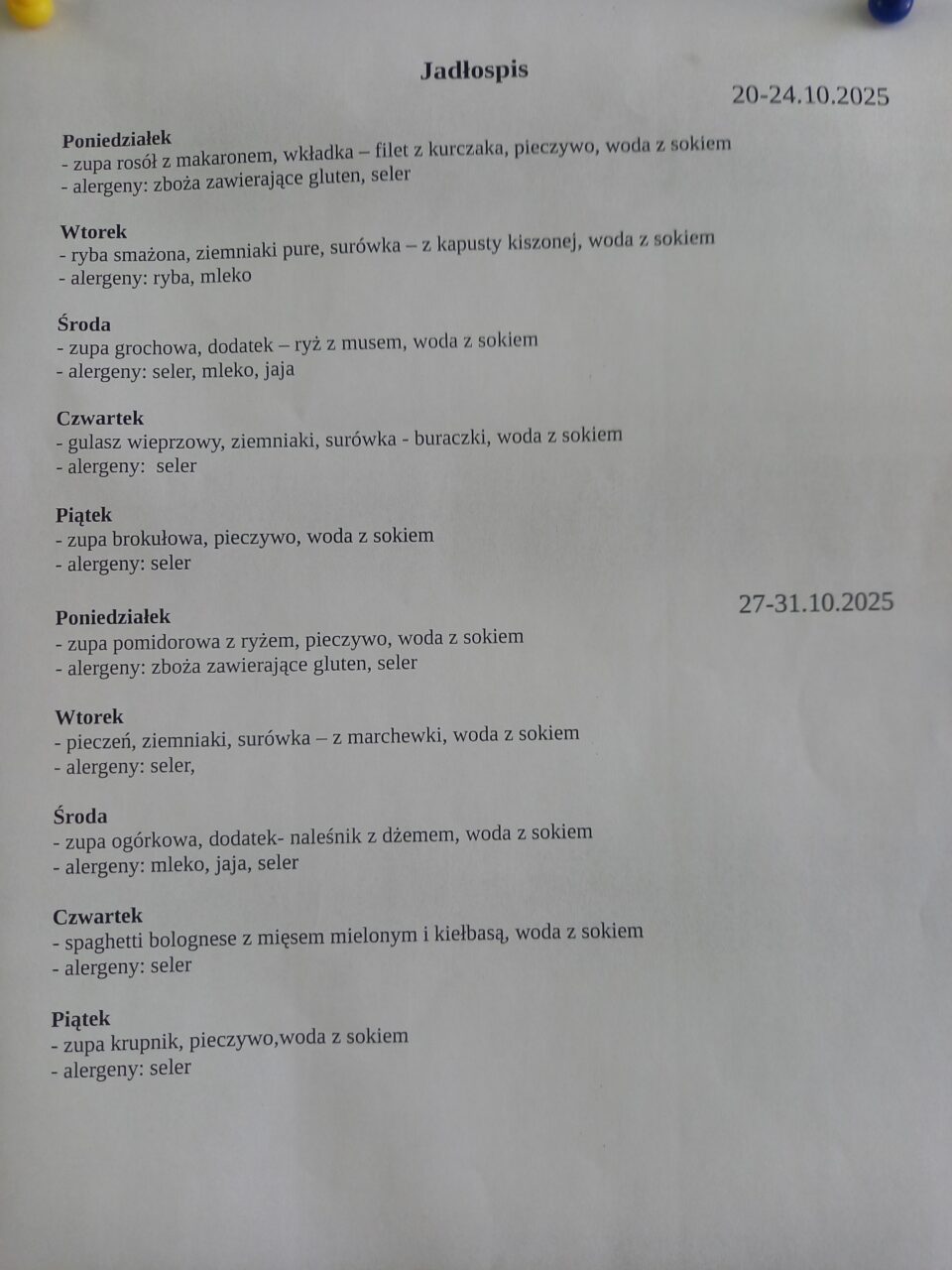 Nr rachunku do opłacania kosztów obiadu i czesnego: